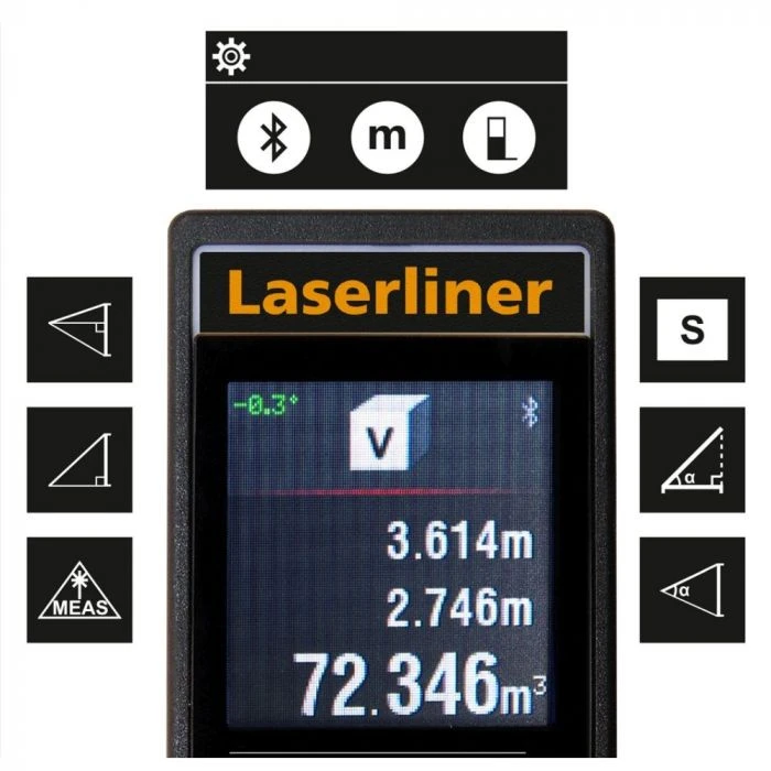 - Laserafstandmeter met hoekfunctie en touch screen met veelzijdige functies