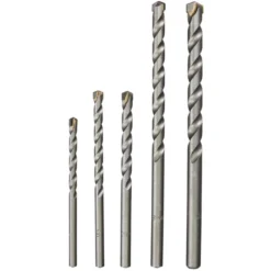 5-delige steenborenset met cilindrische opname, in kunststof verpakking. 5x85mm – 5,5x100mm – 6,5x100mm – 8x150mm – 10x150mm