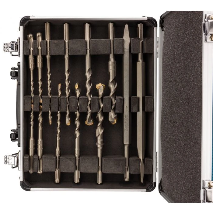 13-delige Makita boor-/beitelset met SDS-PLUS-aansluiting in aluminium koffer.