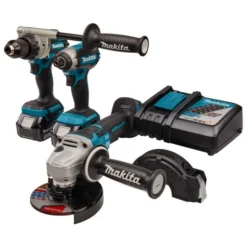 Set bestaat uit drie machines in een tas:DGA508: Haakse slijper voor continu efficiënt slijpen dankzij automatische snelheidscontrole.
