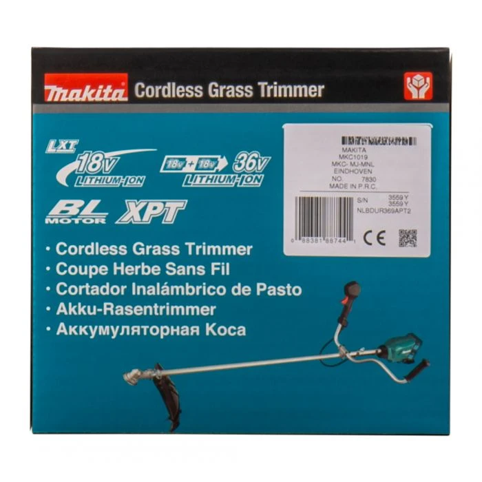 Professionele accubosmaaier met een bijzonder krachtige bovenaan geplaatste 2×18 V motor met een vermogen van 1kW.