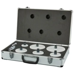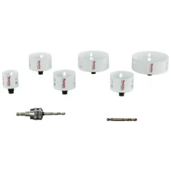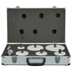 8-delige gatzaagset BiM in aluminium koffer, bestaande uit gatzagen in diameters 51, 73, 76, 83, 114, 133, een Ezychange snelwissel adapter met HSS-G centreerboor en een extra HSS-Co centreerboor.