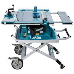 Voorzien van slede om materiaal stabiel langs de zaag te kunnen geleiden.