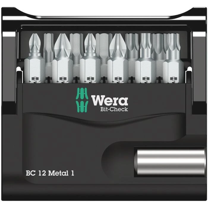 Robuuste Bit-Check van Wera. Bij Bit-Checks heeft u steeds een goed overzicht over het beschikbare gereedschap. Bits die niet nodig zijn voor de werkzaamheden, kunnen in het assortiment worden teruggeplaatst en raken zo niet kwijt. Eenvoudig mee te nemen, bijv. in een borstzak. Inclusief universele houder met krachtige permanente magneet voor plaatsing van bits met 1/4″ buitenzeskant-aansluiting Voor opname in de schroefmachine of in de boorkop van de elektronisch geregelde boormachine. Neerzetbare, meervoudige Bit-Check voor goede bit-positionering in alle situaties.